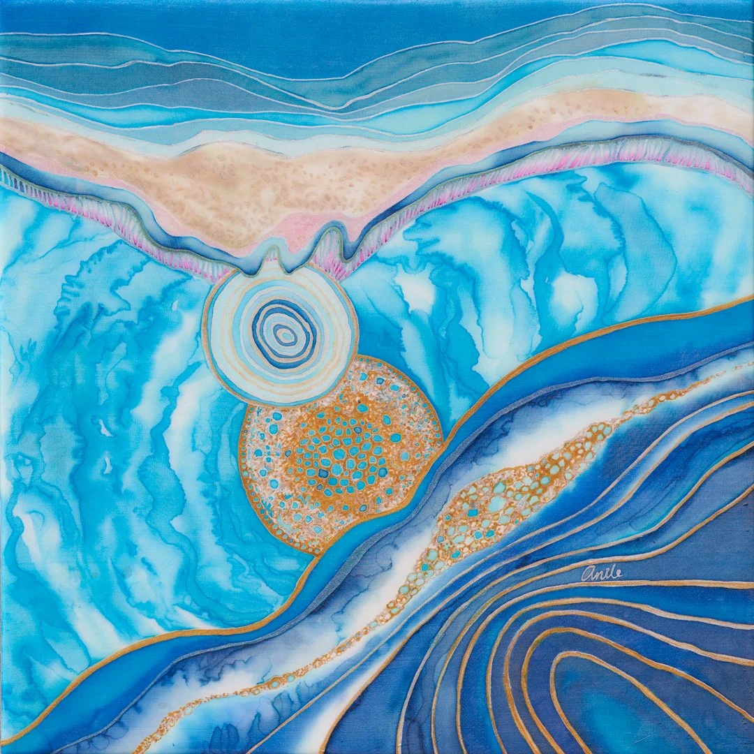 Trabea 51cm x 51cmLayered pure 100% silk, 24K gold, resin, mounted on fibreboard. View fullsize View fullsize View fullsize View fullsize ART INQUIRE